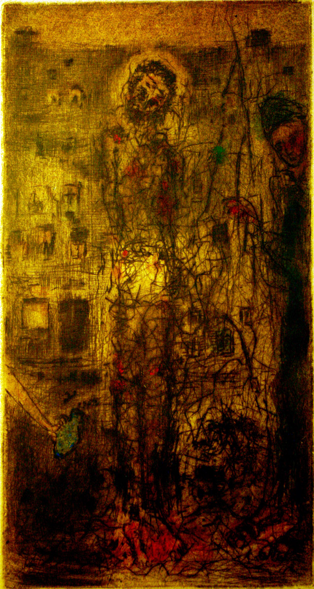 伯胡斯拉夫·雷聂克在捷克是一位自学成材,且具有独创性的天才艺术家。由于其游离于艺术与其他学科的边界而闻名遐迩。 诗人雷聂克在其捷克式的孤独中,与满是荆棘的山楂灌木毗邻而居。如果说中国的诗人将精神融化于水墨当中,那么捷克的诗人则沉醉于荆棘之中。荆棘的尖锐的造就了他的语言。痛苦而令人伤感的线条,其诗意往往难以言表,因此必须借用尖锐的金属来刻画其诗的意境。这已经通过这些版画中美妙的线条,得到了充分体现。